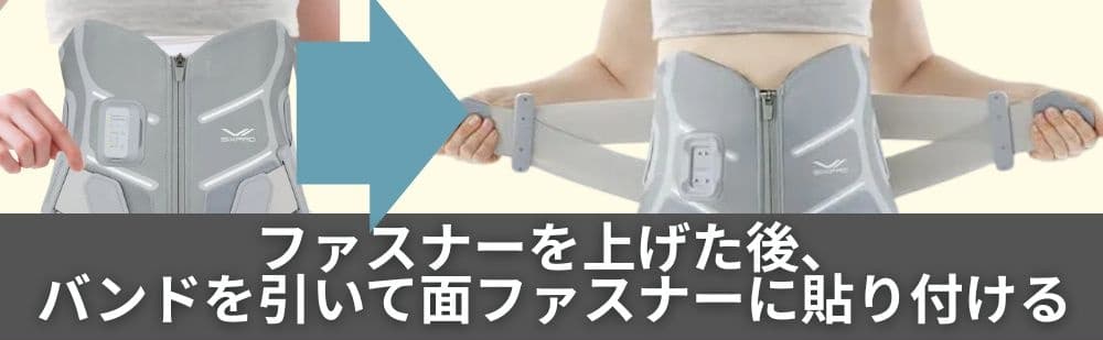 - サポートバンドを引っ張って面ファスナーに貼り付ける